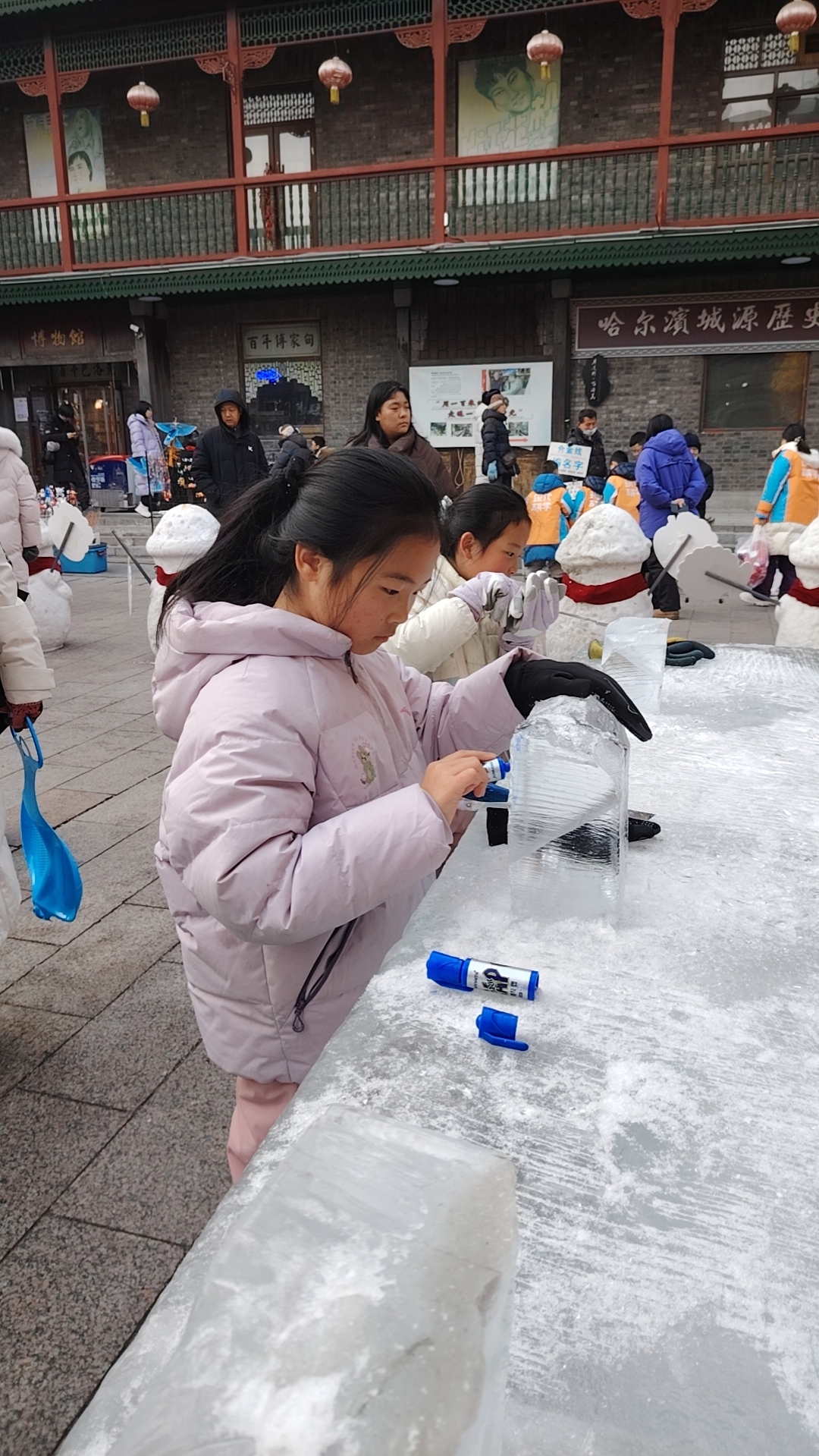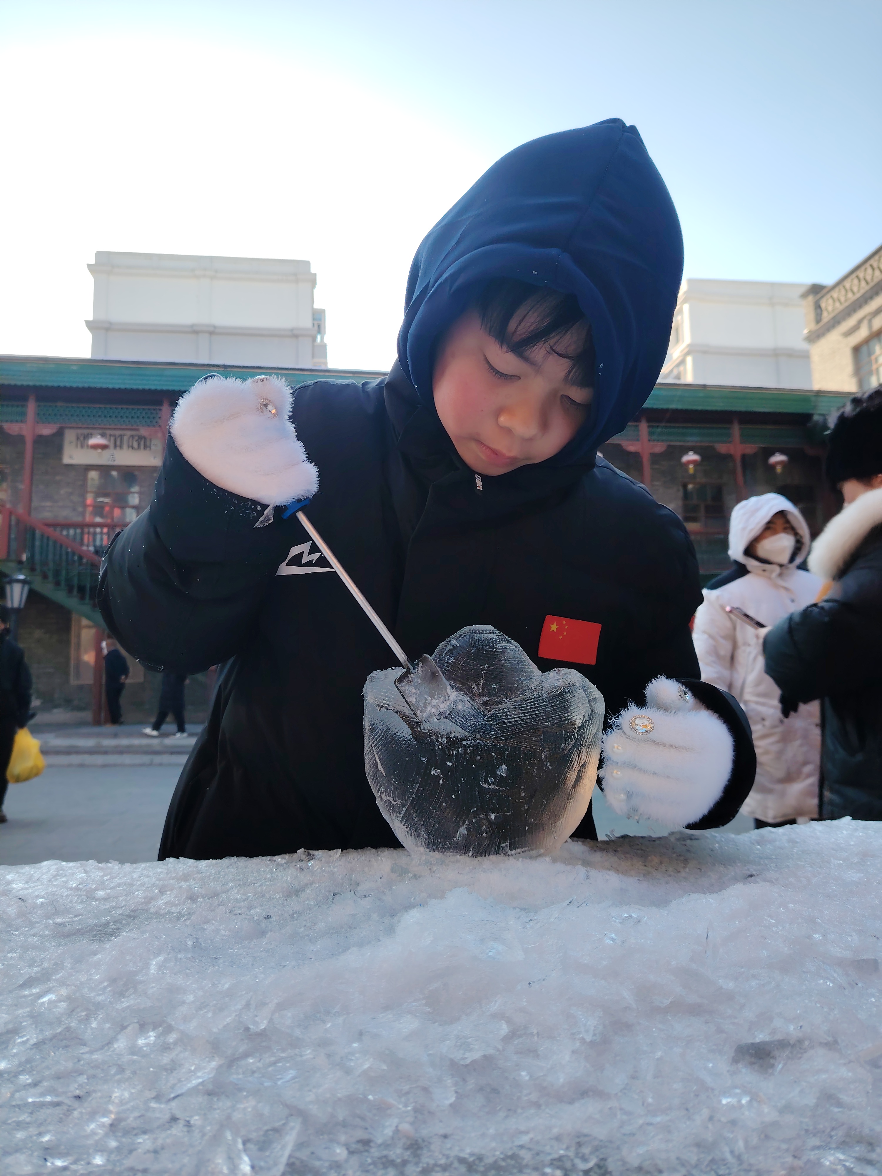 刘迪说,设在景区的这个点位,不仅是给本地孩子的实践课,也是打开给外地游客的一扇窗。“希望大家在逛百年老街区的同时,能亲手摸一摸冰,刻一刻画,近距离感受我们哈尔滨独有的冰雪技艺和文化。”