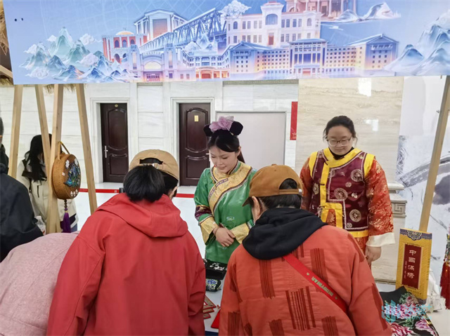 启动仪式后,市民与游客纷纷来到文创体验区。八个各具特色的市集摊位,将博物馆变成了一个充满烟火气的文化创意街区。金漆非遗、满绣艺术的传承人现场展示精湛技艺,冰雪动漫IP衍生品、麦秸工艺画吸引着市民与游客的目光。哈尔滨市博物馆的专属文创与盖章区前人头攒动,香包与纸鸢现场制作区让大人孩子共同体验手作的乐趣。“博物馆+”的融合理念在这里得到生动实践,静态的文物元素通过创意设计,化身为日常可用的服饰、工艺品,真正实现了“让文物活起来”。