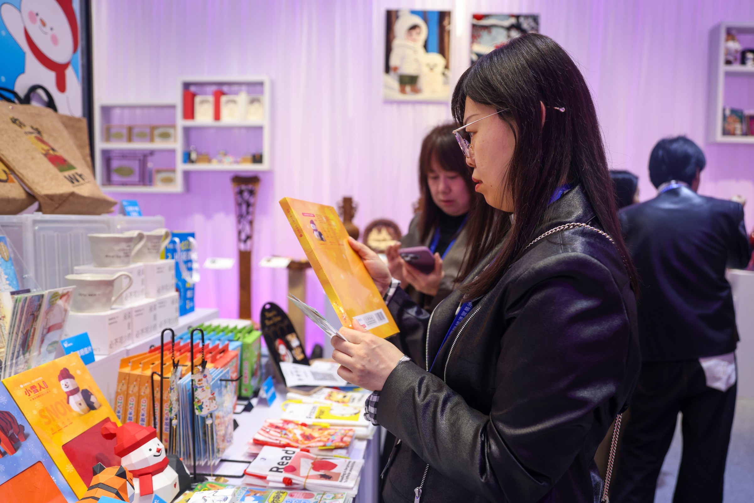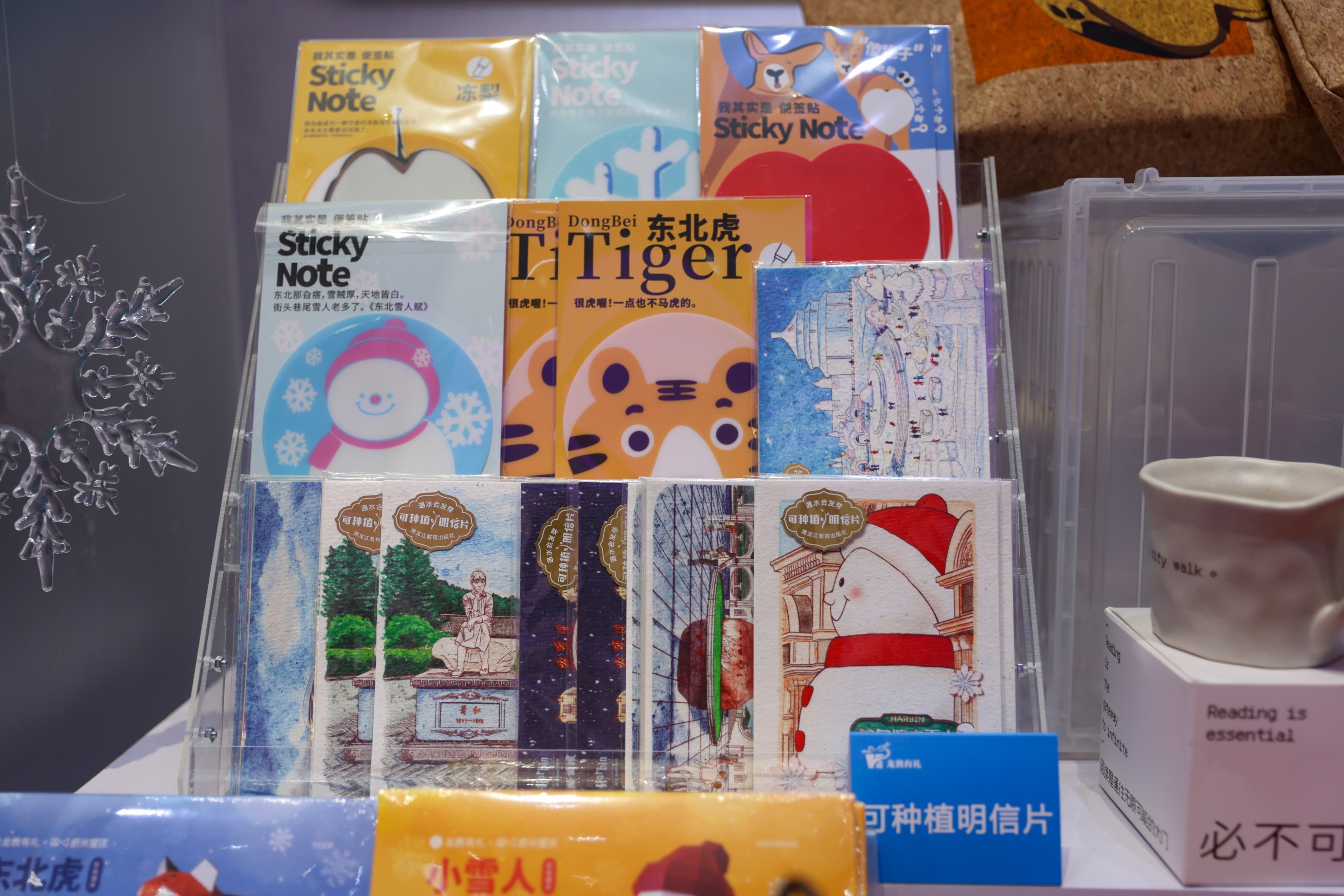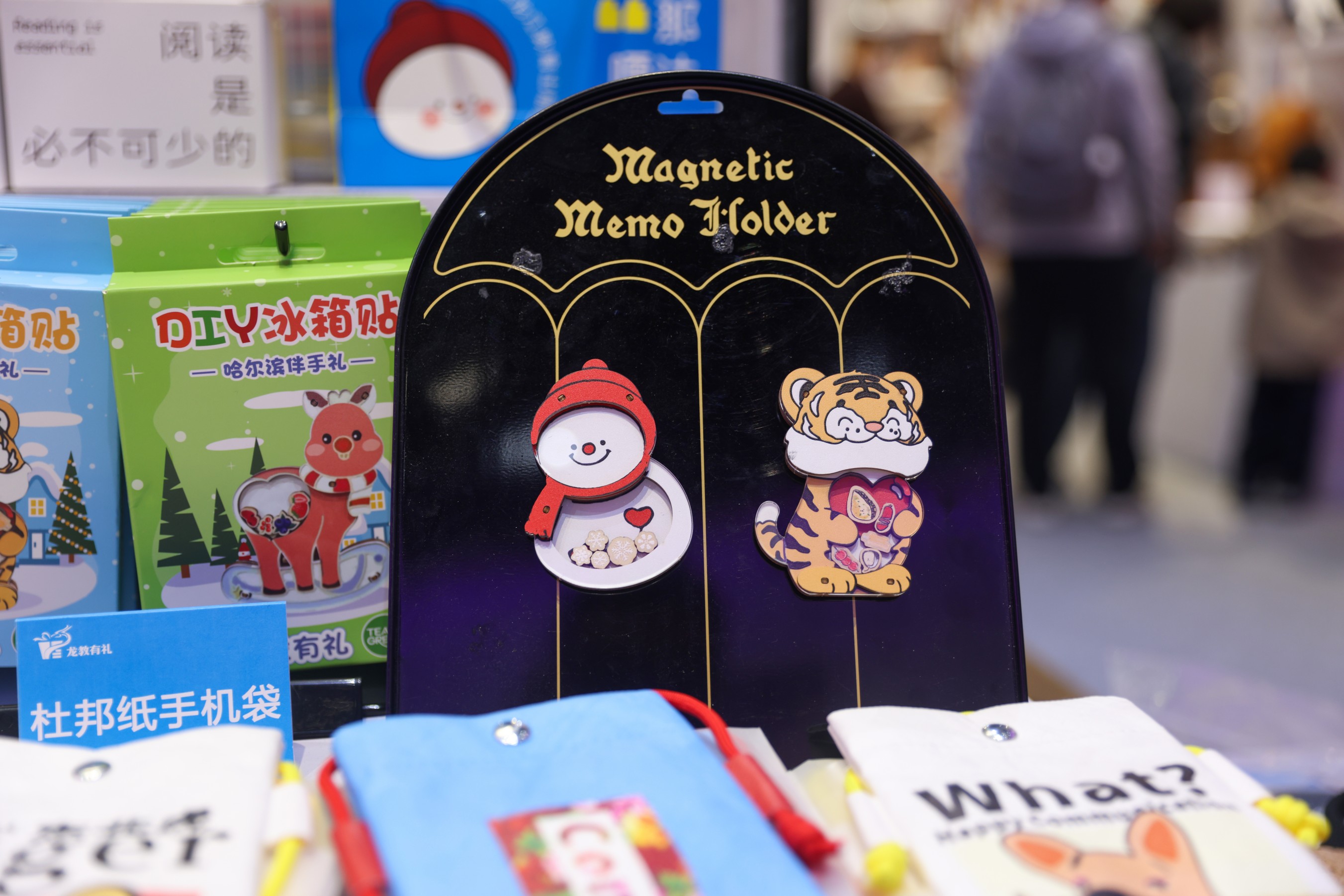 此次哈洽会展出的“龙教有礼”文创产品,围绕城市创意图书《绘玩名物:哈尔滨》展开。该书通过中英文介绍、细腻插画展现了哈尔滨的冰雪景观、人文历史与现代风貌。依托图书衍生出多款创意产品,如哈尔滨城市打卡魔方、AR冰箱贴、带有冰雪元素的小挂件、小雪人折纸文创、悦读时光马克杯等,浓浓的“尔滨”元素,引领读者走进冰雪文化空间,感受多元城市魅力。