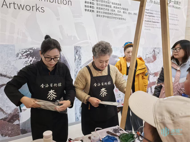 启动仪式后,市民与游客纷纷来到文创体验区。八个各具特色的市集摊位,将博物馆变成了一个充满烟火气的文化创意街区。金漆非遗、满绣艺术的传承人现场展示精湛技艺,冰雪动漫IP衍生品、麦秸工艺画吸引着市民与游客的目光。哈尔滨市博物馆的专属文创与盖章区前人头攒动,香包与纸鸢现场制作区让大人孩子共同体验手作的乐趣。“博物馆+”的融合理念在这里得到生动实践,静态的文物元素通过创意设计,化身为日常可用的服饰、工艺品,真正实现了“让文物活起来”。
